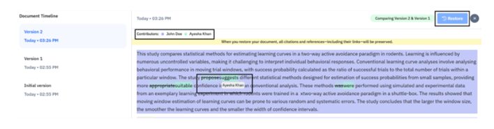 共同執筆や編集では、学術チームが複数のツールやバージョンを同時に扱う必要が生じることがあります。その際に従来のやり方では、バージョン管理の混乱が頻繁に発生し、重要な編集内容が失われるリスク、生産性や著者の信頼に影響を与える技術的な問題、あるいはフィードバックの矛盾や遅延によって執筆の勢いが鈍化するといった問題が生じます。