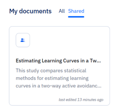5. あなたが共有したドキュメントや、あなたと共有されたドキュメントはすべて、Paperpal ダッシュボードの「Shared」タブに表示されます。
