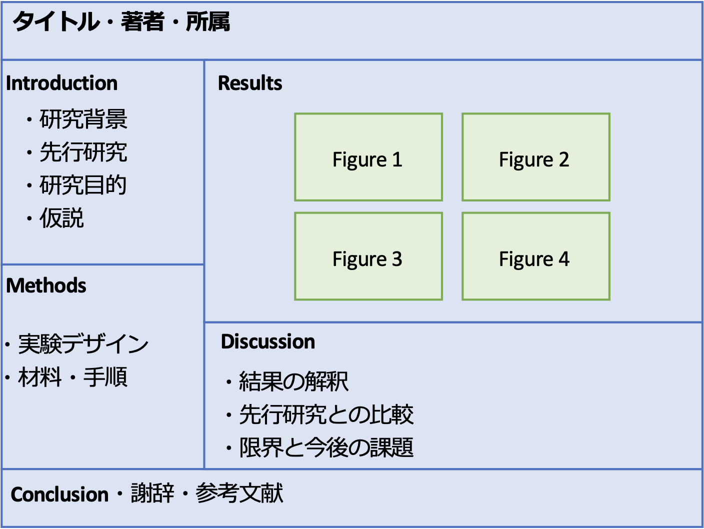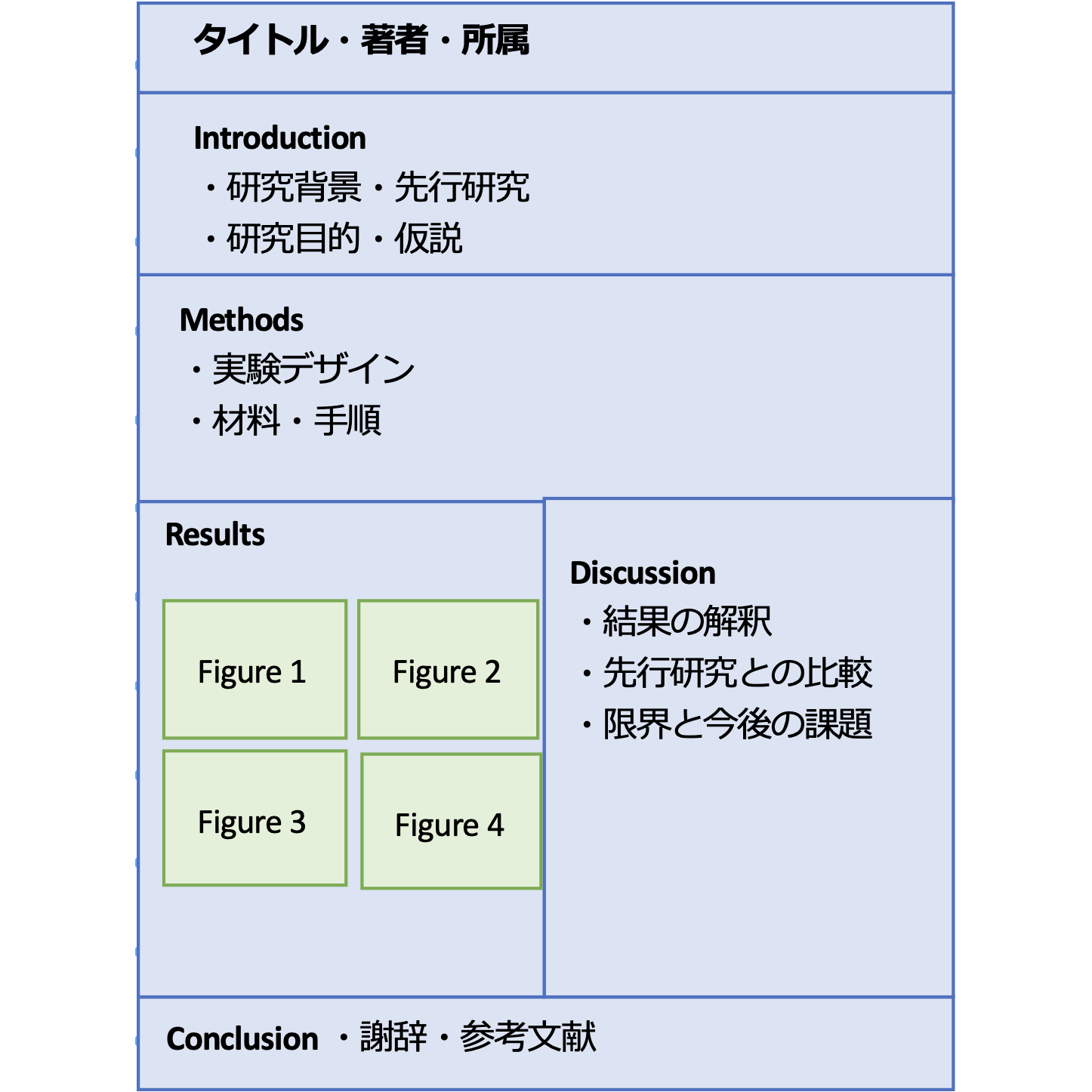 Introduction(序論) → Methods(方法) → Results(結果) → Discussion(考察)