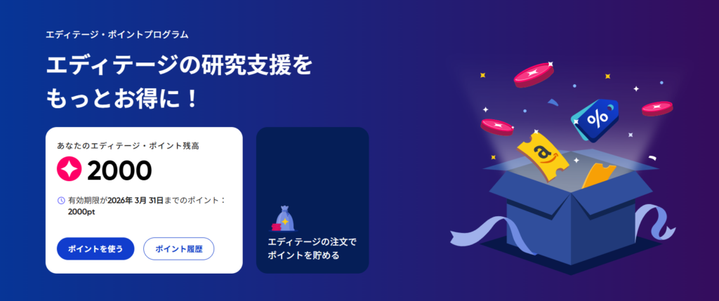 ポイントを上手く活用して、お得にエディテージをご利用ください!