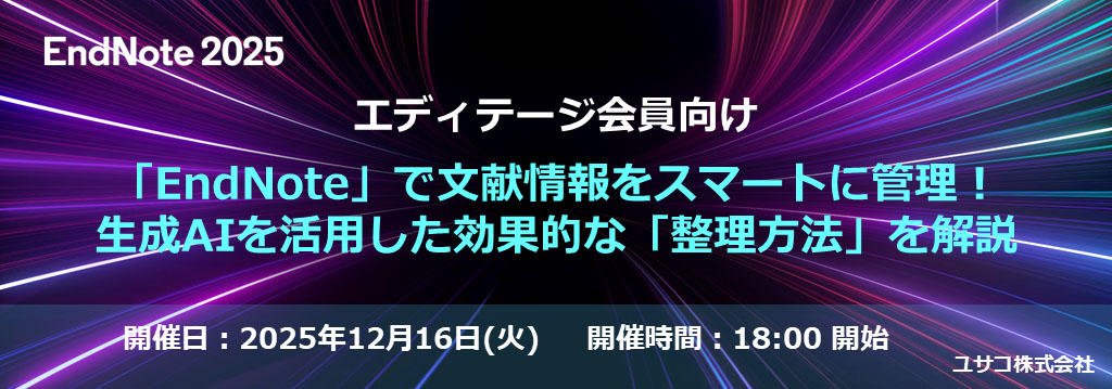 本ウェビナーはEndNoteの正規代理店であるユサコ株式会社が主催しています。